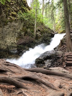We hiked into the BX Falls near our campsite and watched a swallow feeding her chicks in a nest stuck on a cliff, just feet from the rushing falls. That bird expended a lot of energy feeding those chicks during the time we watched her. I tried to take a photo of her.