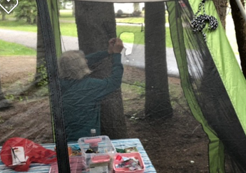 After breakfast, it was time for me to catch up on the blog as I was a week behind and Danny and Judy had graciously offered up their wifi password. I spent the next two hours working on the blog while Debbie spent that time repairing the hole in the net tent that I had melted in Cold Lake. We had purchased some netting in Prince Albert and Debbie was determined to keep those pesky mosquitoes out. She did a pretty good job considering the material she had to work with and hand sewing using a needle and thread!