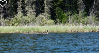 We drove to the Waskesiu Lake marina and put in there. The winds were gusting so we decided to stay in the lee of the shoreline and explore the river estuary and the large water fowl habitat along the river banks. We hoped to see some wildlife but that was not to happen today. We did get yelled at by a heron as we interrupted its fishing. Several large broods of Canada geese and gosling paddled away from us into the reeds and mallard ducks and ducklings scooted through the reeds as we floated by. Red winged blackbirds announced our arrival. Several large crows hopped through hummocks of marsh reeds searching for nests that they could raid.