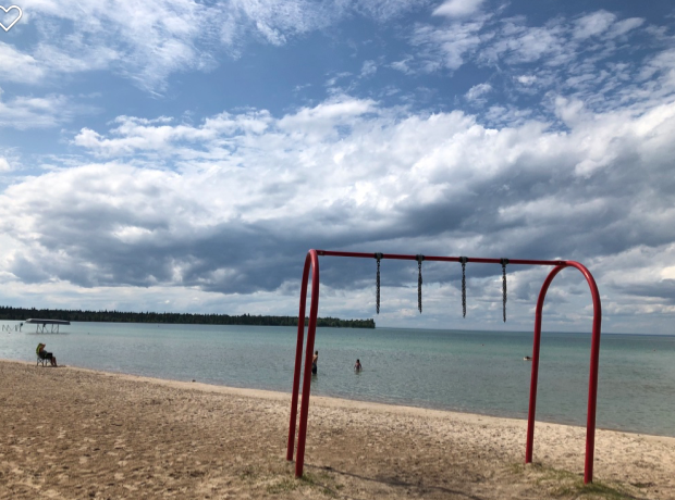 We were going to go kayaking today, but the weather was not cooperating. We needed to go back to The Pas, 18 kms south, to refill a propane tank that ran out last night. We had a second tank but due to our location we felt it was prudent to make sure that we had enough propane all the time. We also needed to make some more phone calls so we needed some cell phone coverage.