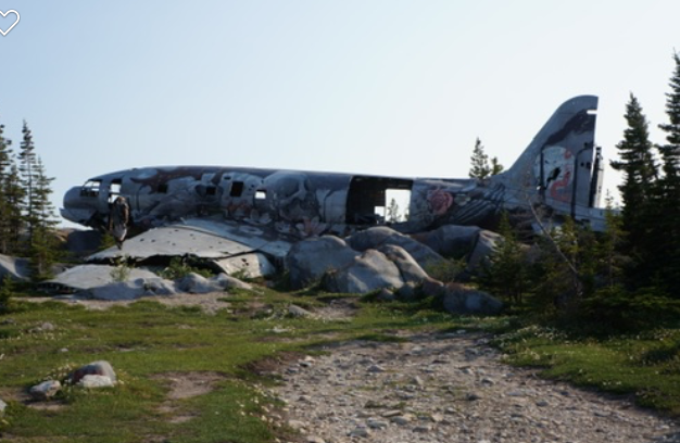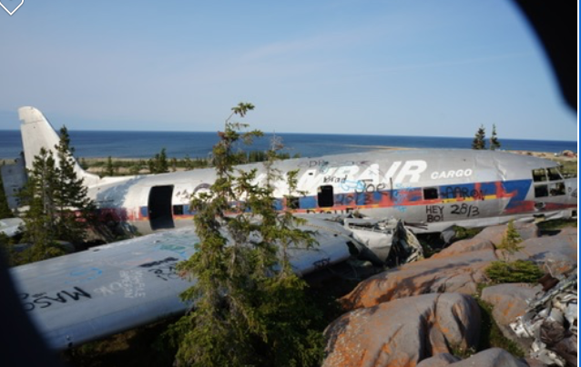 We then visited the site of a plane crash. The wreck is affectionately referred to as “Miss Piggy” as the nose cone is missing. She explained that the plane was a transport plane that was fully loaded and had just left the Churchill airport when it experienced mechanical difficulty and the pilots where successful in belly flopping the plane onto the rocks. No one was injured and most of the cargo was salvaged. A mural has since been painted on the side of the plane and it has now become an attraction that tourists can clamber onto.
