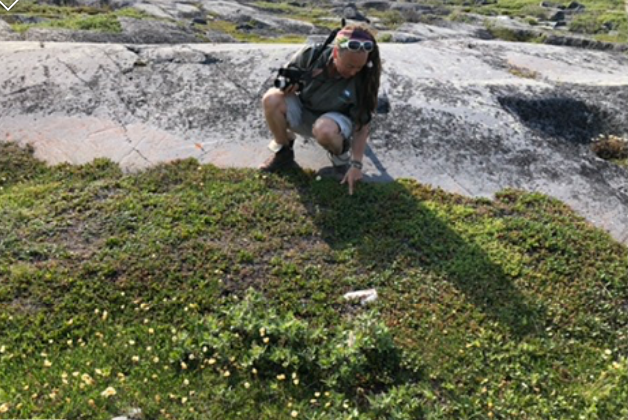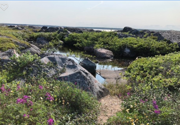 Cape Merry is at the mouth of the Churchill River. It had been built by the Hudson’s Bay Company to protect the actual fort that was situated across the river. There were several cannons placed in the thick rock walls of the cannon battery. Judd explained that the battery was actually built by employees of the Hudson’s Bay Company and as a result was not really an effective security as the employees were not soldiers, and did not think like soldiers. The result was that one of the cannons was actually placed pointing at the Trading Fort across the river! The site overlooks the Bay and you could see the belugas swimming. Judd stopped many times on our hike to show us the many tiny flowers and plants that grew out of the rocks and lichens. The growing season for these plants is about six weeks. She explained how some were used for medicinal purposes and which ones were edible. (Judd did mention that before she arrived in Churchill she was a vegetarian, however she quickly had to change her diet for lack of vegetables.) She was so informative and interesting.