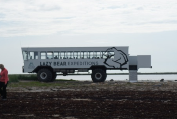 The story of this freighter is that in the mid 1900 it was carrying supplies to Churchill and was caught in a storm. The captain dropped anchor to ride out the storm however, the winds dragged the ship to shore and it beached on the shallow shores. No one was injured and most of the supplies were salvaged. At low tide you can still walk out to the wreck. After returning to the parking area for the Tundra Crawler we boarded the bus to go to the airport.