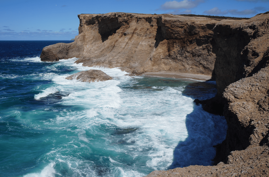 After driving through Corner Brook, we decided to visit Cape St. George. This point of land juts out off the coast into the Gulf of St. Lawrence. It is surrounded on three sides by water but the coastline is sensational, with very high headlands and then small coves with fantastic beaches. The winds are still high and the surf is rolling against the shores. It was simply a beautiful drive and certainly underscores the many televised Newfoundland tourist advertisements.