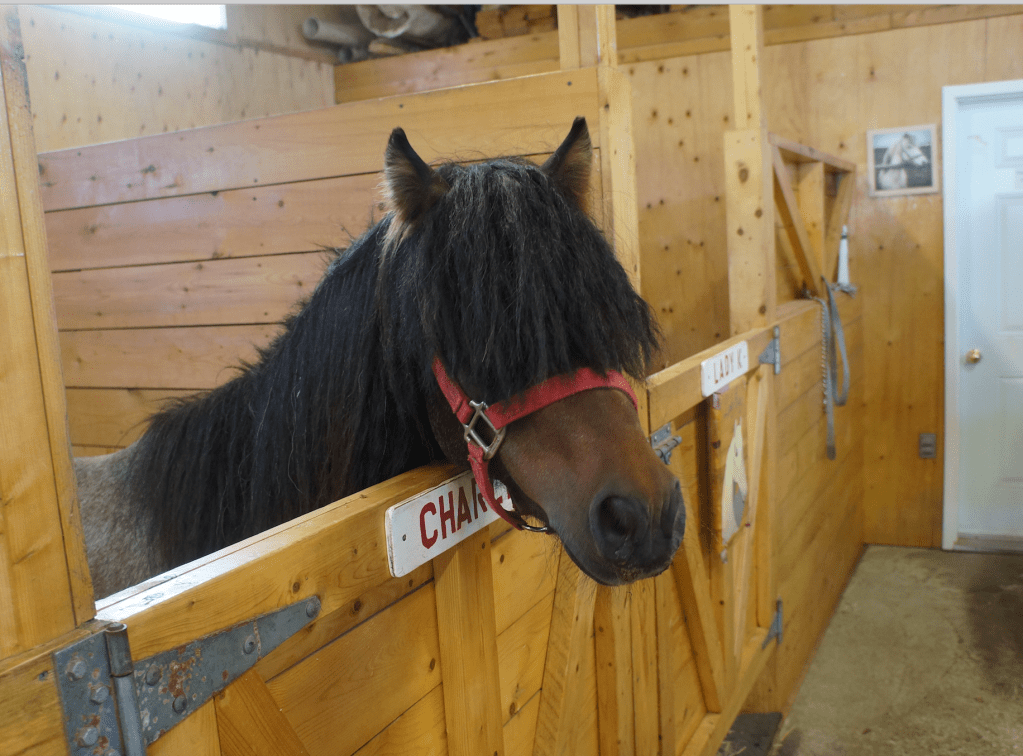 Neta explained that she has been the caretaker of the horses for the past 9 years. She fund raised, and successfully applied for government grants, about 6 years ago, that allowed a new barn to be built, however, it has been existing ever since on public donations. Neta does not receive wages and does this work totally out of love for the horses. She told us that these horses are on the brink of extinction. She is looking for another Newfoundland stud right now to further the breeding program.