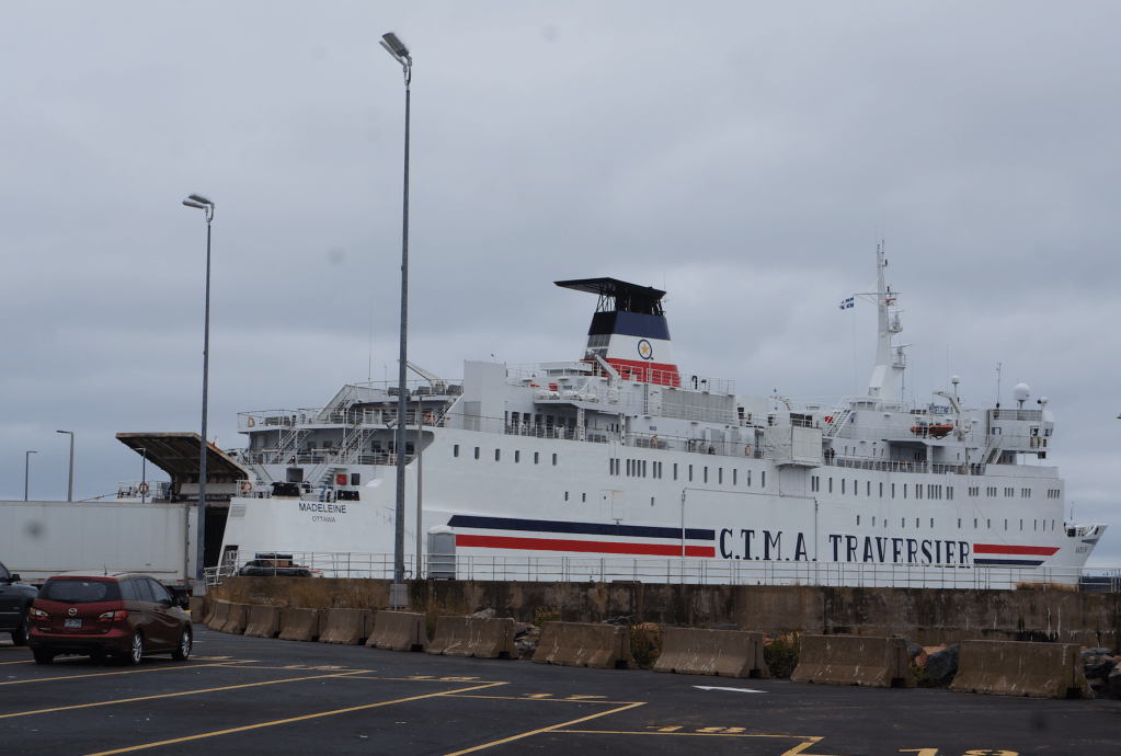 We arrived in Souris on time, located the folks called MacDonalds. Mr. Macdonald directed us to his back yard and we unhitched and secured our trailer. We could see the large ferry from his house, and my anxiety disappeared. We had lots of time for loading. We began loading at 2:00.