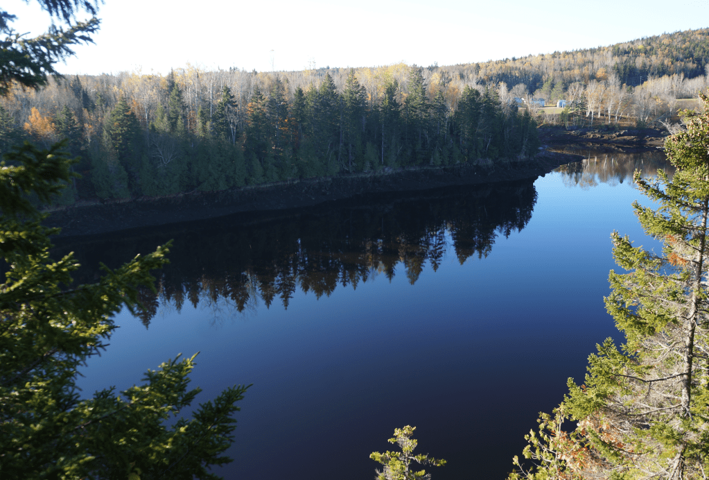 We woke up to a foggy morning. Our set up in the Caldwell’s Campground was “interesting”. When we pulled in, there was no one in the office or in sight, so after waiting for a few minutes we decided to leave. At that time a man appeared from around a building. It was obvious that he did not speak English but through hand gestures and the occasional French/English words we determined, that we could hook up for electricity, no water, but the showers have hot water. We were assigned a spot near the showers and hooked up. Debbie gave him the 30 dollars that he asked for in cash and we never saw him again. (We later laughed and wondered if he even worked there!). The showers were warm and clean. The place was quiet and secluded and we had a good sleep. Overall it appeared that they had survived a rough summer, as there were a lot of broken lights, chairs and doors. It was supposed to look like a “coco cabana” theme however, it was pretty cheesy and it appeared that a hurricane had hit. Oh well we were simply parked here for the evening so it would do. Since all of the provincial and federal campgrounds are now closed for the season, we are left to our imagination as to where we will boondock. This is all part of the experience.